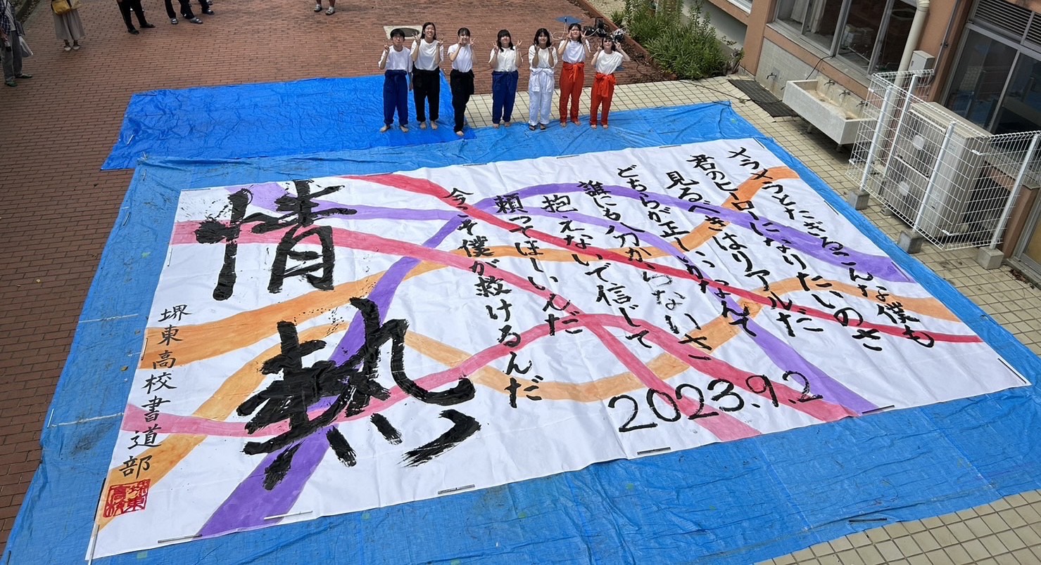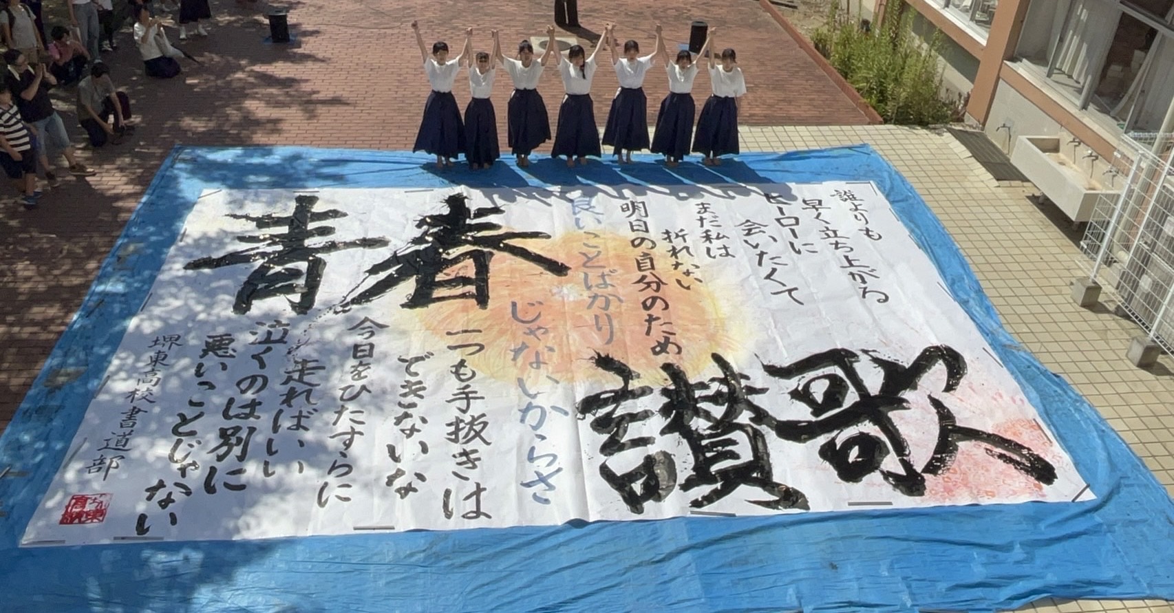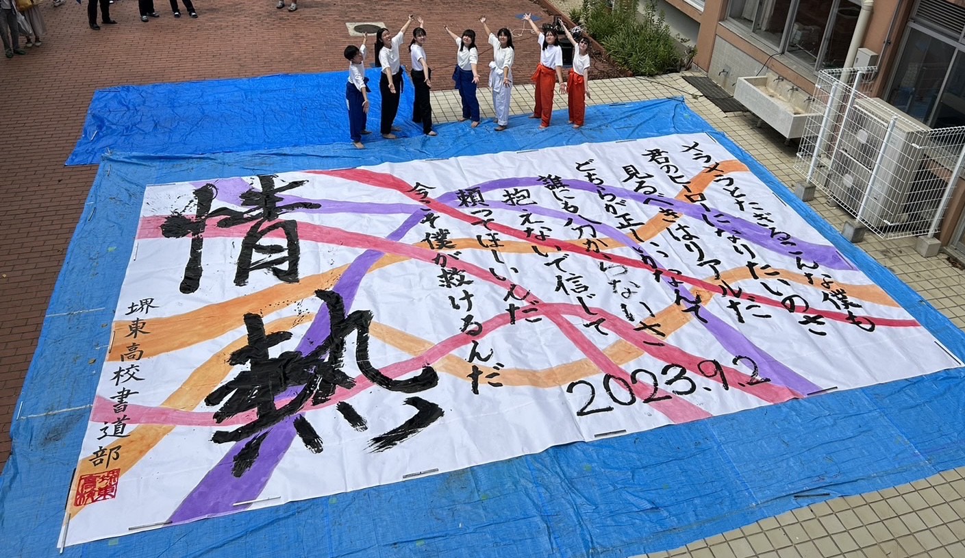 大阪高校芸術祭やコンクールなどに出す作品作りに取り組んでいます。賞も受賞しています。文化祭では書道パフォーマンスを行っています。