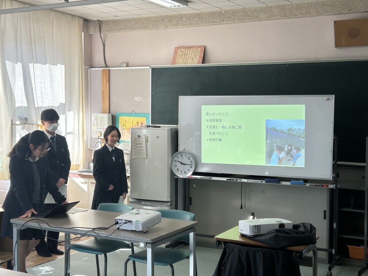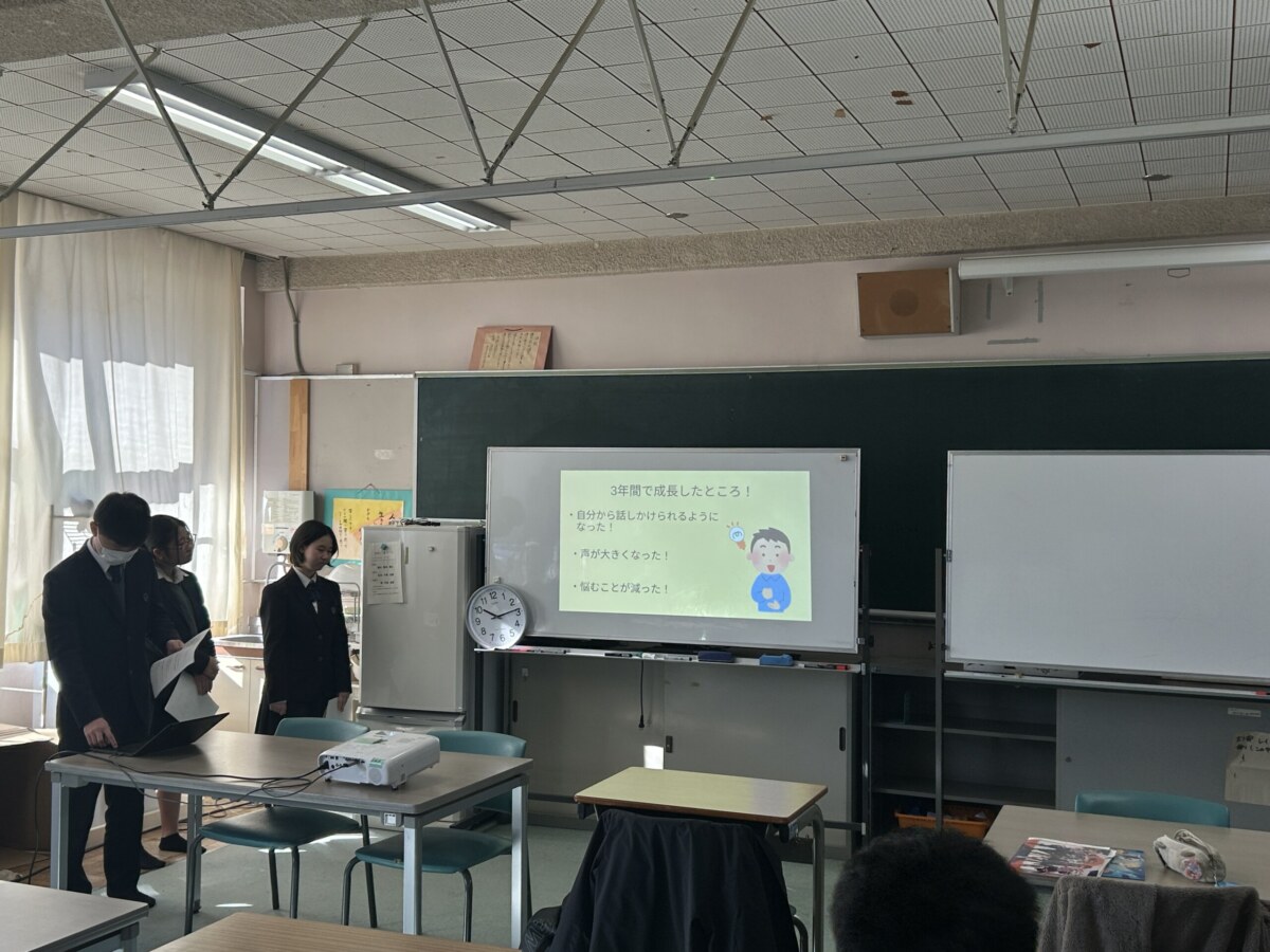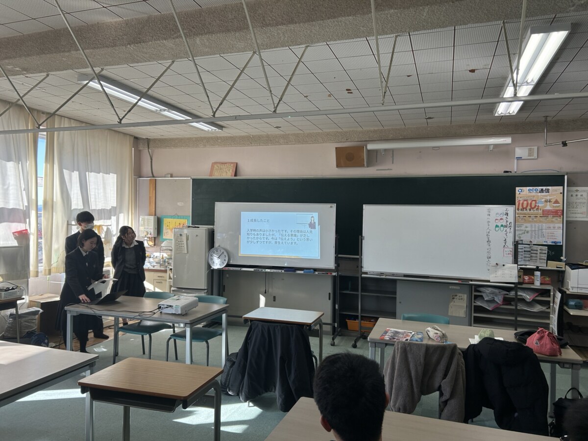 。3年生が高校生活での成長をスライドにまとめ、後輩や教員に向けて発表しました。成長を強く感じ、これからがとても楽しみになりました